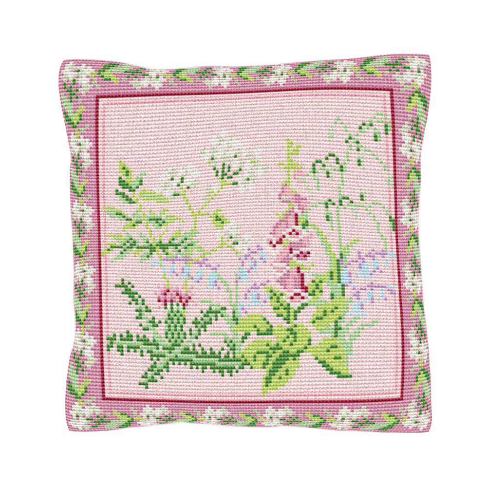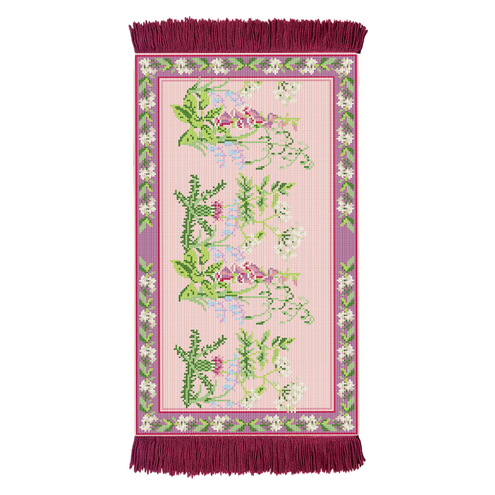 - Worked in easy cross stitch on 5 holes per inch canvas (Rug) and 7.5 holes per inch canvas (Bell Pull, Cushions and Door stop)